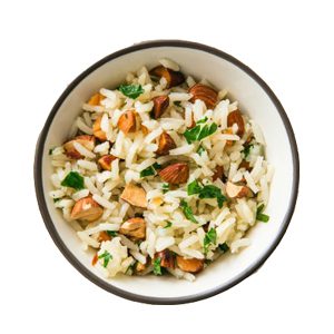 Where do the calories in Almond Rice come from?