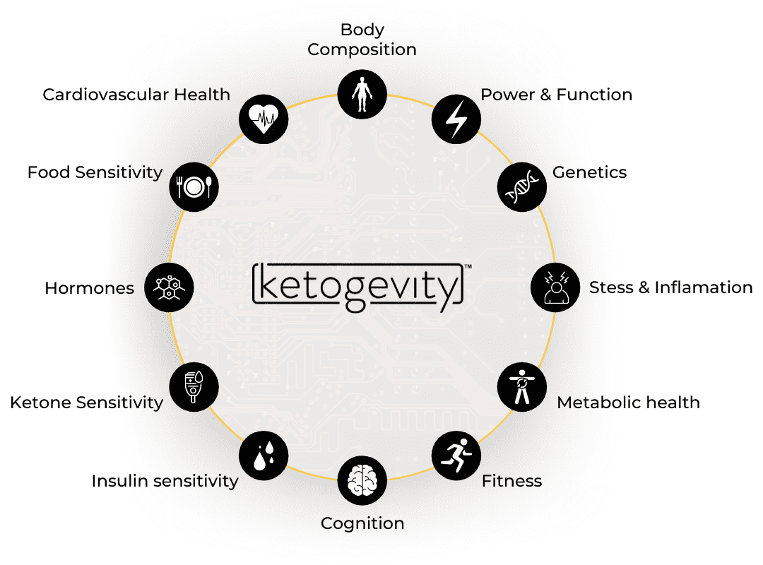 Ketogevity™️ helps determine your strengths, weaknesses, and biological age in order to provide you with a personalized plan to improve your health and longevity.